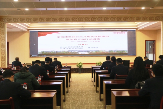 為深入學(xué)習(xí)宣傳貫徹黨的二十大精神,根據(jù)湖北省委統(tǒng)一安排部署,1月10日下午,湖北工程公司學(xué)習(xí)貫徹黨的二十大精神專題培訓(xùn)班暨湖北省委宣講團(tuán)宣講報(bào)告會(huì)順利舉辦,湖北省委宣講團(tuán)成員、省委黨校中共黨史黨建教研部主任、教授唐嵐以《全面建設(shè)社會(huì)主義現(xiàn)代化國(guó)家的政治宣言和行動(dòng)綱領(lǐng)》為題通過(guò)線上方式為湖北工程公司廣大干部員工作專題報(bào)告宣講。湖北工程公司領(lǐng)導(dǎo)班子成員,總部中層以上干部,事業(yè)部、分子公司及黨群部門全體人員共計(jì)近200人通過(guò)線下或線上參加會(huì)議。 唐嵐教授結(jié)合詳實(shí)的數(shù)據(jù)、豐富的史實(shí),從黨的二十大召開的重大意義、黨的二十大報(bào)告的框架結(jié)構(gòu)、黨的二十大報(bào)告的重點(diǎn)內(nèi)容三個(gè)方面,完整、準(zhǔn)確、全面地解讀了黨的二十大精神。報(bào)告從黨的二十大召開的歷史背景、基本情況、主題、議程等方面解讀了黨的二十大的重大意義;從總體情況、15個(gè)部分、歷屆黨代會(huì)報(bào)告等方面解析了報(bào)告的框架結(jié)構(gòu);從新成就、新境界、新使命、新部署、新的偉大工程五個(gè)方面闡釋了報(bào)告的重點(diǎn)內(nèi)容。宣講深入淺出、內(nèi)容豐富、邏輯嚴(yán)謹(jǐn)、思想深刻,對(duì)公司上下深刻理解、準(zhǔn)確把握、貫徹落實(shí)黨的二十大精神有著極大啟發(fā)和幫助。 會(huì)議就公司做好黨的二十大精神學(xué)習(xí)宣傳貫徹工作提出兩點(diǎn)要求:一是要堅(jiān)持學(xué)深悟透,著力把準(zhǔn)精神實(shí)質(zhì)。要自覺(jué)從堅(jiān)定擁護(hù)“兩個(gè)確立”、堅(jiān)決做到“兩個(gè)維護(hù)”的高度,以此次宣講為契機(jī),繼續(xù)在全面學(xué)習(xí)、全面把握和全面落實(shí)上下功夫,做到學(xué)思用貫通、知信行統(tǒng)一,推動(dòng)學(xué)習(xí)宣傳貫徹黨的二十大精神往深里走、往心里走、往實(shí)里走。二是要堅(jiān)持落地見(jiàn)效,推動(dòng)公司高質(zhì)量發(fā)展。要用黨的二十大精神統(tǒng)一思想、統(tǒng)領(lǐng)全局、統(tǒng)攬工作,始終堅(jiān)持學(xué)以致用、以行促效,把學(xué)習(xí)宣傳貫徹黨的二十大精神與謀劃全年工作結(jié)合起來(lái)、與推動(dòng)公司“二五”規(guī)劃落地落實(shí)結(jié)合起來(lái),認(rèn)真謀劃,狠抓落實(shí),以黨的二十大精神科學(xué)指引今年和未來(lái)工作,切實(shí)把黨的二十大精神轉(zhuǎn)化為指導(dǎo)實(shí)踐、推動(dòng)工作、引領(lǐng)公司高質(zhì)量發(fā)展的強(qiáng)大力量,為全面建設(shè)社會(huì)主義現(xiàn)代化國(guó)家、全面推進(jìn)中華民族偉大復(fù)興貢獻(xiàn)電建力量。